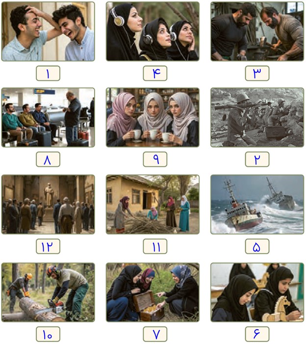 شمارۀ هر جمله را زیر تصویرِ خودش بنویسید.