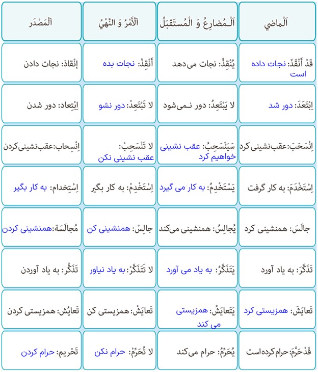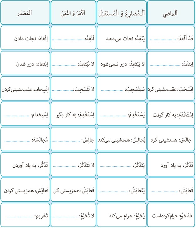 تَرْجِمِ الْاَفعالَ وَ الْمَصادِرَ التّاليَةَ.