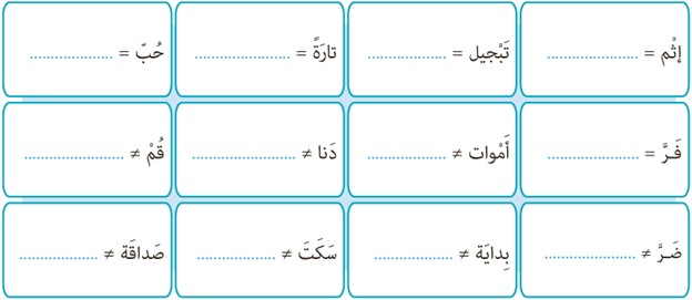 ضَعِ الْمُتَرادِفاتِ وَ الْمُتَضادّاتِ في مَکانِهَا الْمُناسِبِ. ( = ≠ )