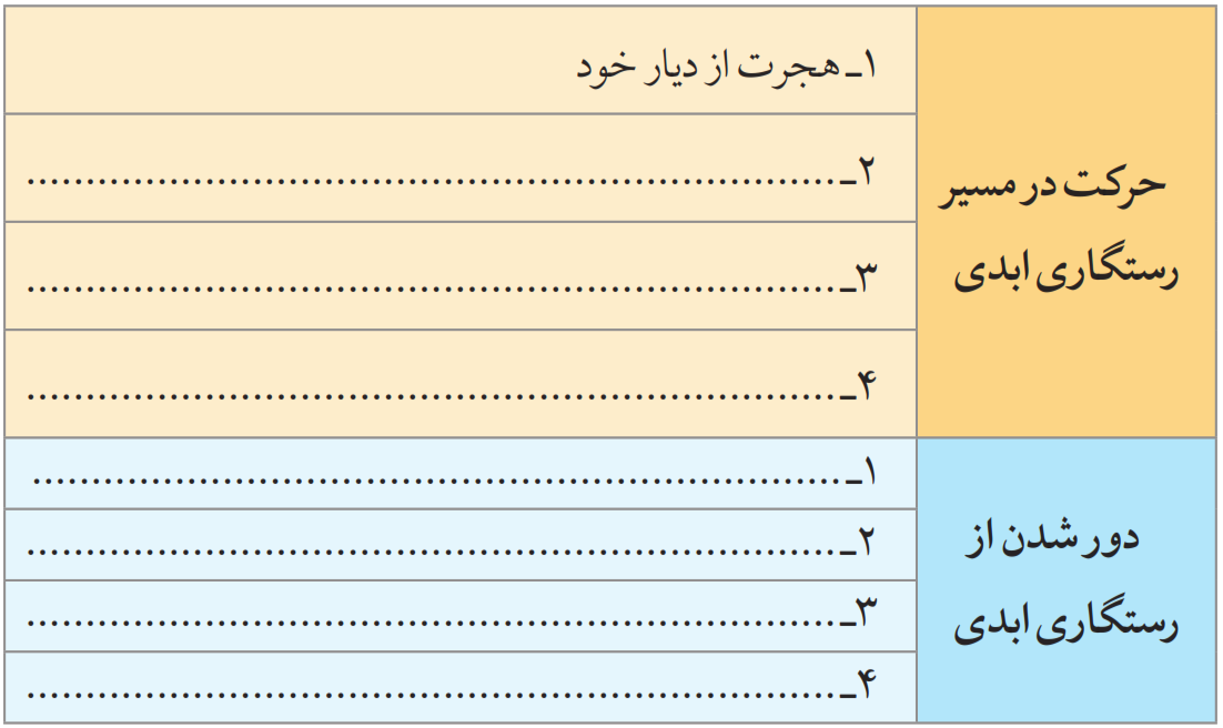 1 رفتارهای سعد را از ابتدای همراهی با پیامبر تا پایان درس در جدول زیر بنویسید.