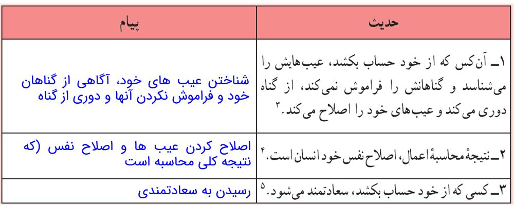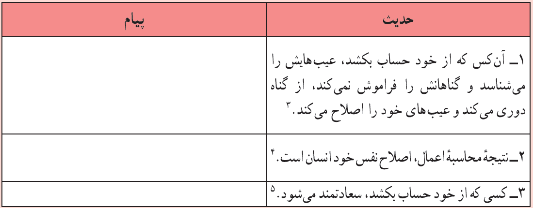 در جدول زیر، ترجمه سه سخن از امام علی آمده است. در این سخنان تأمل کنید و آثاری که آن حضرت برای محاسبه بیان فرموده است، استخراج کنید.
