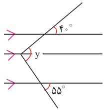 \(\begin{array}{l}y + {55^ \circ } = {180^ \circ }\\\\ \Rightarrow y = {40^ \circ } + {55^ \circ } = {95^ \circ }\end{array}\)
