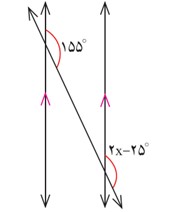 \(\begin{array}{l}2x - {25^ \circ } = {155^ \circ }\\\\ \Rightarrow 2x = {180^ \circ }\\\\ \Rightarrow x = {90^ \circ }\end{array}\)