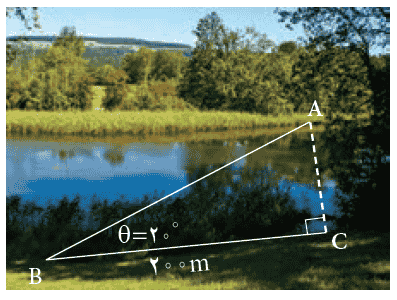 \(\begin{array}{l}\sin \:20^\circ \simeq 0/34\\\\ \Rightarrow \cos \:20^\circ = \sqrt {1 - {{\sin }^2}\:20^\circ } = \sqrt {1 - {{\left( {0/34} \right)}^2}} \simeq 0/94\\\\\tan \:20^\circ = \frac{{AC}}{{BC}} = \frac{{\sin \:20^\circ }}{{\cos \:20^\circ }} \simeq 0/36\\\\AC = BC \times \tan \:20^\circ = 200 \times 0/36 = 72\end{array}\)