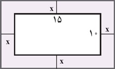 9 یک عکس به اندازهٔ 10 در 15 سانتی متر درون یک قاب با مساحت 300 سانتی متر مربع، قرار دارد. اگر فاصلهٔ همهٔ لبه های عکس تا قاب برابر باشد، ابعاد این قاب عکس را پیدا کنید.