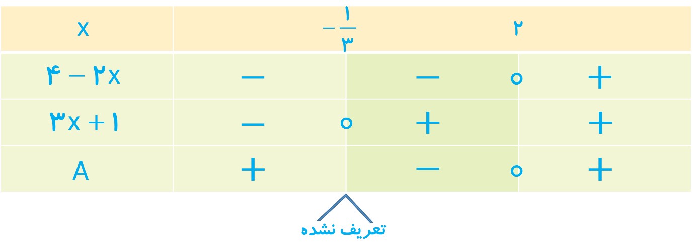 ت \(\frac{{4 - 2x}}{{3x + 1}} \ge 0\)