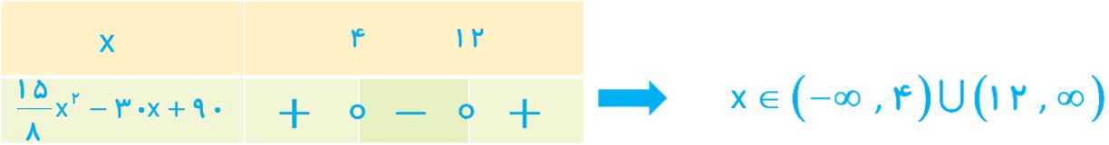 5 تعداد ضربان قلب، x دقیقه\(\left( {0 \le x \le 8} \right)\) پس از پایان یک کار سنگین بدنی، طبق رابطهٔ \(y = \frac{{15}}{8}{x^2} - 30x + 200\) به دست می آید. در چه زمان هایی پس از یک کار سنگین بدنی، تعداد ضربان قلب از ١١٠ بیشتر است؟ آیا تمام جواب های به دست آمده قابل قبول اند؟