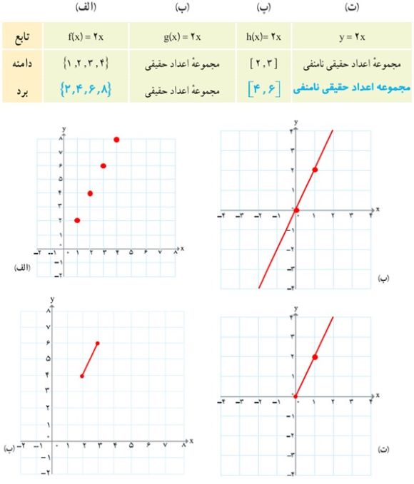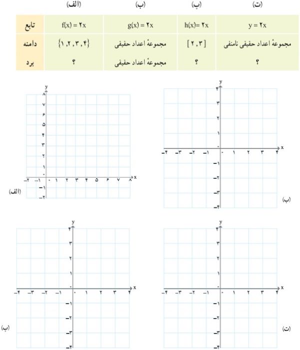 دامنه و برد هر تابع را معلوم کنید.