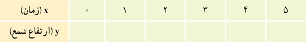 4 یک شمع 20 سانتی متر ارتفاع دارد و در هر ساعت 4 سانتی متر آن می سوزد. پس از چند ساعت شمع خاموش خواهد شد؟ جدولی تنظیم کنید و در ساعات مختلف ارتفاع شمع را محاسبه کنید.