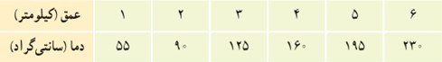 8 جدول زیر دمای سنگ ها در عمق های متفاوت زیر سطح زمین را نشان می دهد.