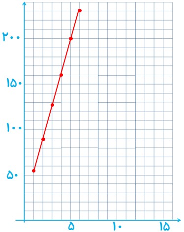 \(\begin{array}{*{20}{l}}{A\left| {\begin{array}{*{20}{l}}1\\{55}\end{array}} \right.}\\{B\left| {\begin{array}{*{20}{l}}2\\{90}\end{array}} \right.}\\{m = \frac{{90 - 55}}{{2 - 1}} = 35}\\{y - {y_0} = m\left( {x - {x_0}} \right) \Rightarrow y - 55 = 35\left( {x - 1} \right)}\\{ \Rightarrow y = 35x + 20}\end{array}\)