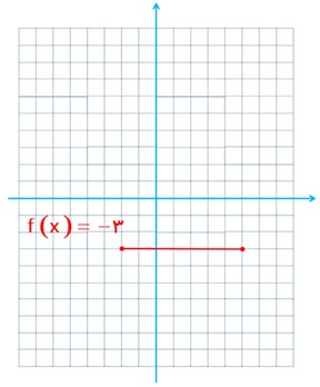 الف تابع f(x) = -3 را رسم کنید و مقادیر f(2) و f(100) و f(-5) و \(f\left( {\sqrt 5 } \right)\) و \(f\left( { - \frac{3}{4}} \right)\) را بدست آورید.