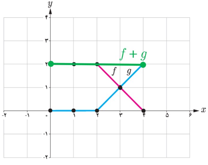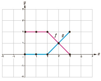 4 در شکل مقابل، نمودار دو تابع f و g رسم شده است. نمودار حاصل جمع این دو تابع را به دست آورید.