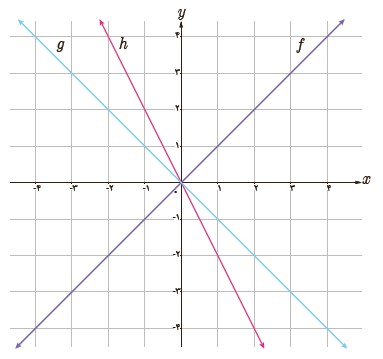 \(\left. \begin{array}{l}f\left( x \right) = x\\g\left( x \right) = - x\\h\left( x \right) = - 2x\end{array} \right\} \Rightarrow g\left( x \right) = f\left( x \right) + h\left( x \right) = x + \left( { - 2x} \right) = - x\)