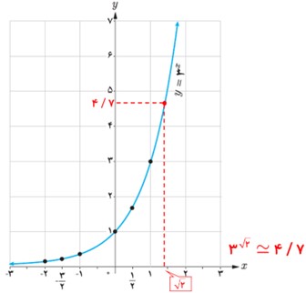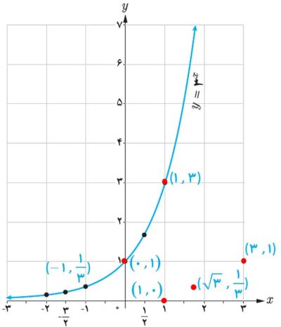 الف نمودار تابع با ضابطهٔ y=3x را رسم کنید و مقدار تقریبی عدد را با توجه به نمودار به دست آورید.