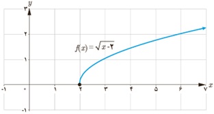 5 دربارهٔ تابع با ضابطه \(f\left( x \right) = \sqrt {x - 2} \) موارد زیر را در صورت وجود محاسبه کنید: