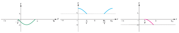 2 در هر یک از نمودارهای زیر بخشی از یک تابع مثلثاتی رسم شده است. با توجه به بخش رسم شده، توابع مثلثاتی داده شده در زیر را به نمودارها نظیر کنید و سپس نمودار را کامل سازید.