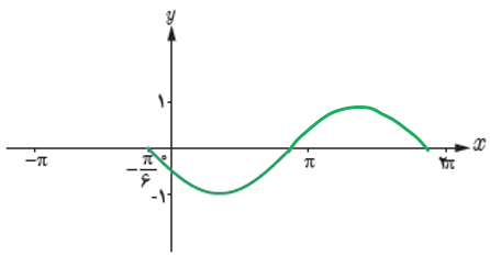 \(\left\{ \begin{array}{l}{y_{Max}} = 1 \Rightarrow \left( {\frac{{4\pi }}{3}\;,\;1} \right)\\{y_{Min}} = - 1 \Rightarrow \left( {\frac{\pi }{3}\;,\; - 1} \right)\end{array} \right.\)