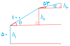 \(\begin{array}{l}{h_1} = 50\\{h_2} = 100\sin \theta \\{h_3} = 53\sin \alpha \\H = {h_1} + {h_2} + {h_3} = 50 + 100\sin \theta + 53\sin \alpha \end{array}\)