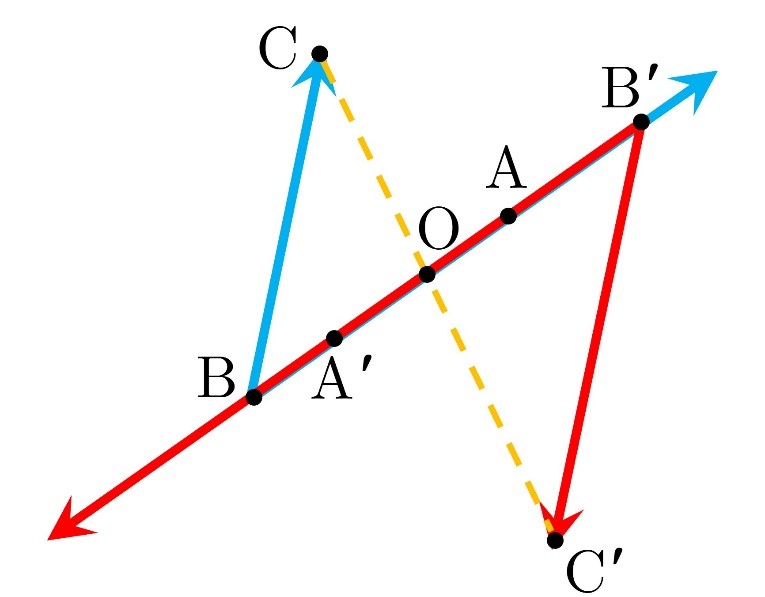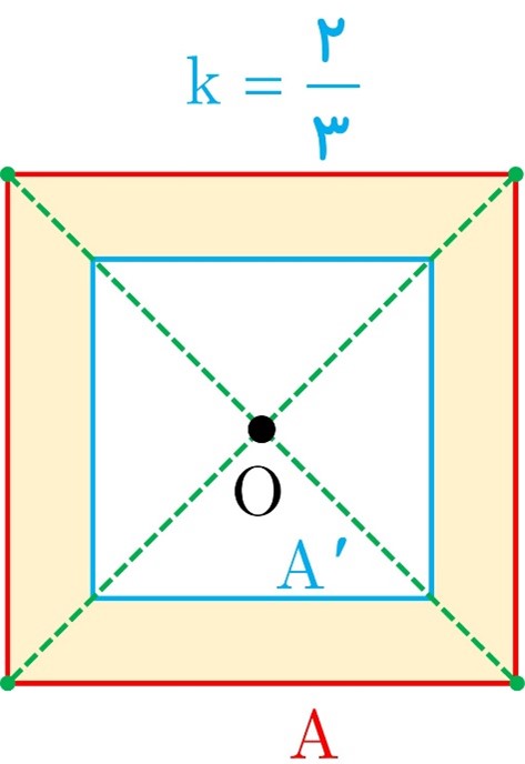 1) در حالی که نقطه O روی خط AB قرار دارد و 0>k ، بدیهی است که نقاط A’ و B’ مجانس های نقاط A و B روی خط AB واقع می شوند؛ بنابراین A’B’ بر AB واقع است و شیب تغییر نمی کند.
