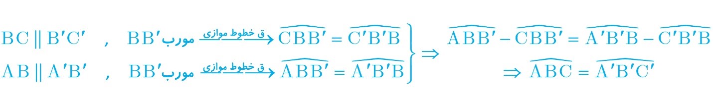 پس بنا بر عکس قضیه خطوط موازی، خط AB موازی با خط A’B’ است و شیب خط ها در صورت وجود با هم برابر است.