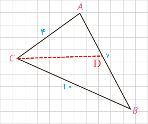 2 در مثلث AB=7 ، ABC و AC=4 و BC=10 است. طول نیمساز زاویه داخلی C را به دست آورید.