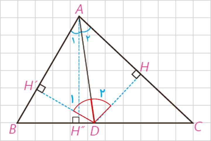 3 با پر کردن جاهای خالی با فرض اینکه در شکل مقابل AD نیمساز زاویه A است، روش دیگری برای اثبات قضیه نیمسازهای زوایای داخلی ارائه کنید: