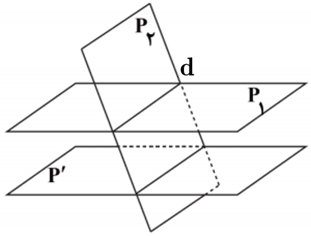 الف صفحه \(P’\) صفحه \(P_2\) را در خطی موازی خط \(d\) قطع می کند: