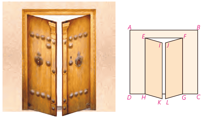 3 شکل زیر یک دیوار و یک در دو لنگه را که در دیوار قرار گرفته است، نشان می دهد. وضعیت خط ها و صفحه های زیر را مشخص کنید.