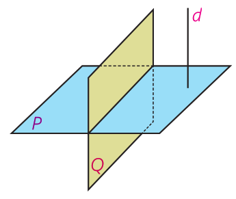 9 دو صفحۀ \(P\) و \(Q\) برهم عمودند و خط \(d\) نیز بر صفحهٔ \(P\) عمود است. این خط نسبت به صفحهٔ \(Q\) چه وضعی دارد؟