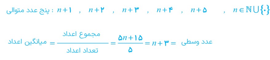 ب میانگین پنج عدد طبیعی متوالی همان عدد وسطی است.