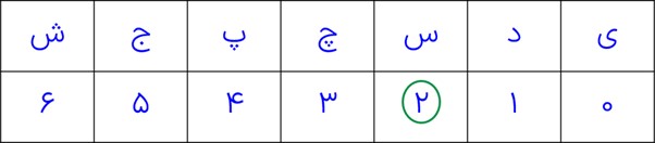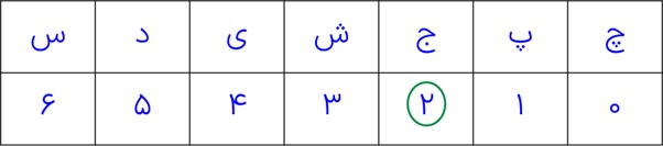 در جدول برای روز جمعه عدد 2 را می نویسیم، سپس اعداد قبل و بعد آن را تعیین می کنیم؛ عدد صفر مربوط به روز 31 مرداد است.