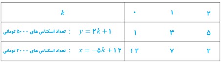تعداد اسکناس های 2000 تومانی را x و تعداد اسکناس های 5000 تومانی را y در نظر می گیریم؛ بنابراین: