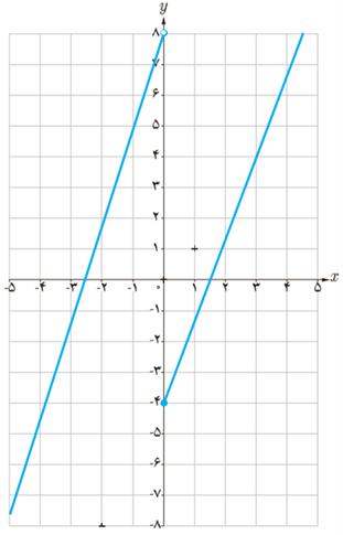 ب نمودار تابعی را رسم کنید که در هریک از بازه های \(\left( { - \infty \;,\;0} \right)\) و \(\left[ {0\;,\; + \infty } \right)\) اکیداً صعودی باشد ولی در R اکیداً صعودی نباشد.