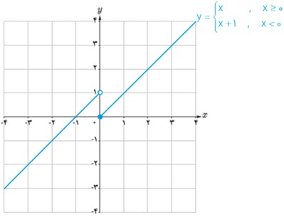 7 نمودار تابعی را رسم کنید که در هر یک از بازه های \(\left( { - \infty ,0} \right)\) و \(\left( {0, + \infty } \right)\) اکیداً صعودی باشد ولی در R اکیداً صعودی نباشد.