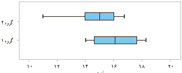 ب دامنه تغییرات در گروه 2 بیشتر از گروه 1 است؛ دامنه میان چارکی در گروه 1 بیشتر از گروه 2 است.