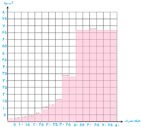 الف نمودار «طبقه مصرف _ آب بها» جدول بالا را رسم کنید و ضابطه و دامنه و برد تابع را به دست آورید.