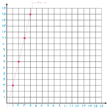4 اگر جملات یک دنباله از قانون تابع خطی y=4x-1 پیروی کنند، با توجه به دامنهٔ دنباله: