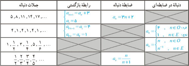 6 جملهٔ پنجم دنباله های بازگشتی زیر را مشخص کنید.