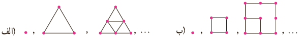 11 جملات دنبالهٔ بازگشتی \({a_{n + 1}} = {a_n} + \left( {n + 1} \right)\;,\;{a_1} = 1\) رأس کدام یک از الگوهای زیر را مشخص می کنند؟