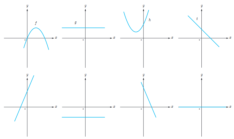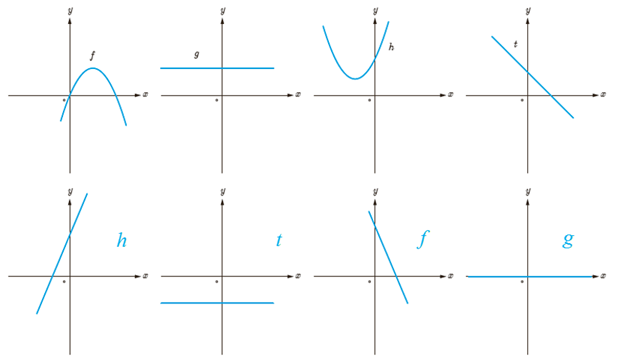 10 نمودار توابع f و g و h و t را به نمودار مشتق آنها، نظیر کنید.