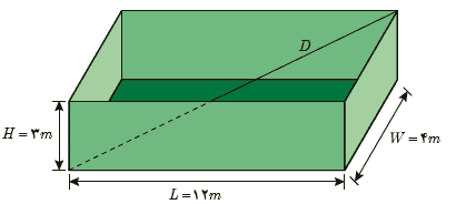 5. اگر D قطر جعبهٔ زیر باشد، اندازهٔ آن از طریق تابع \(D = {\left( {{L^2} + {W^2} + {H^2}} \right)^{\frac{1}{2}}}\) (L طول، W عرض و H ارتفاع جعبه) به دست می آید.