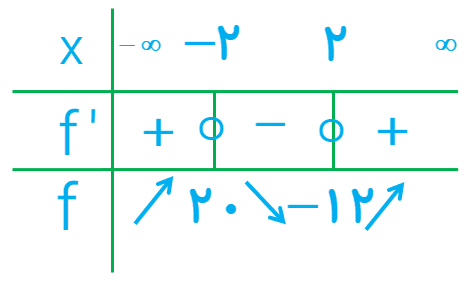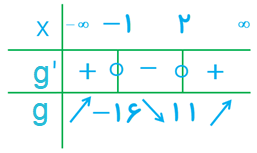 نقاط بحرانی: \(( - 1\;,\; - 16)\;,\;(2\;,\;11)\)