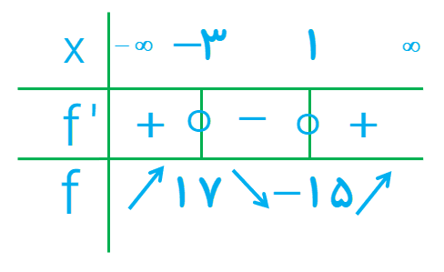 نقاط بحرانی: \((1\;,\;15)\;,\;( - 3\;,\;17)\)