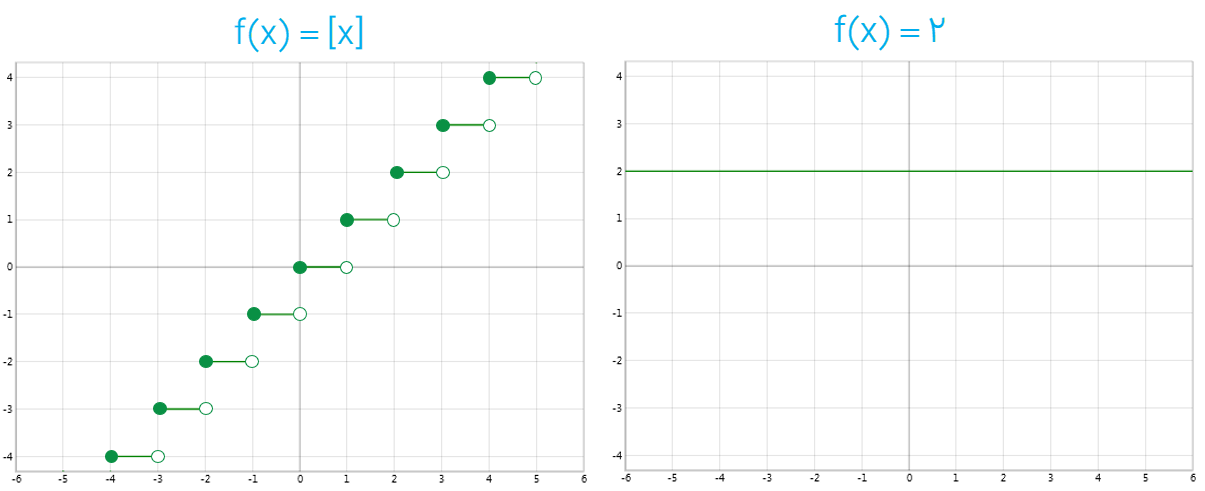 \(\begin{array}{l}f(x) = \left[ x \right]\;\;\;\;\;x \in \mathbb{R}\\\\f(x) = k\;\;\;\;\;x \in \mathbb{R}\end{array}\)