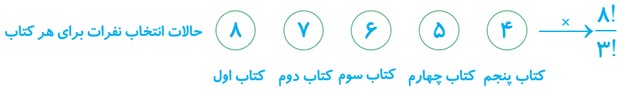 6 به چند طریق می توان 5 کتاب مختلف را بین 8 نفر توزیع کرد، اگر بخواهیم به هر نفر حداکثر یک کتاب بدهیم؟