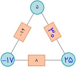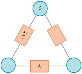 6 در مثلث مقابل، عدد روی هر ضلع، از مجموع عددهای دو رأس به دست می آید.