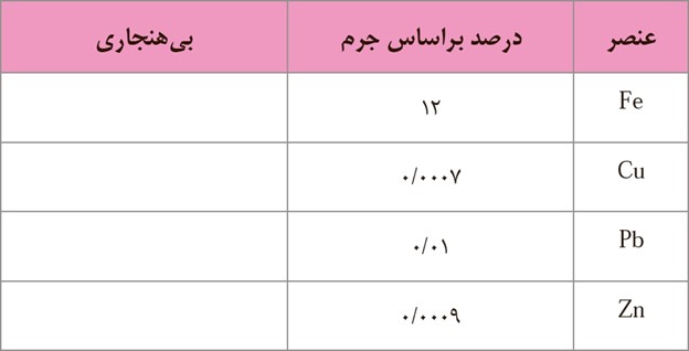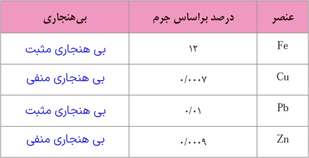 نتایج حاصل از تجزیه سنگ های یک منطقه، در جدول ارائه شده است. در کدام عنصر بی هنجاری مثبت و در کدام بی هنجاری منفی دیده می شود؟