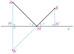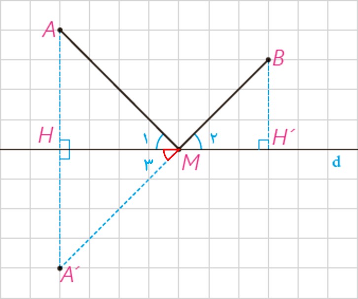 نقطه M روی عمود منصف AA’ است. بنابراین MA=MA’ پس مثلث MAA’ متساوی الساقین است. در نتیجه خط d نیمساز زاویه AMA’ است: