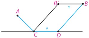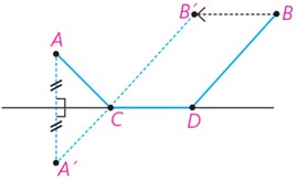 \(AC + CD + DB\;\;\mathop \Rightarrow \limits_{CB' = DB}^{CD = B'B} \;\;ACDB = AC + CB' + B'B\)